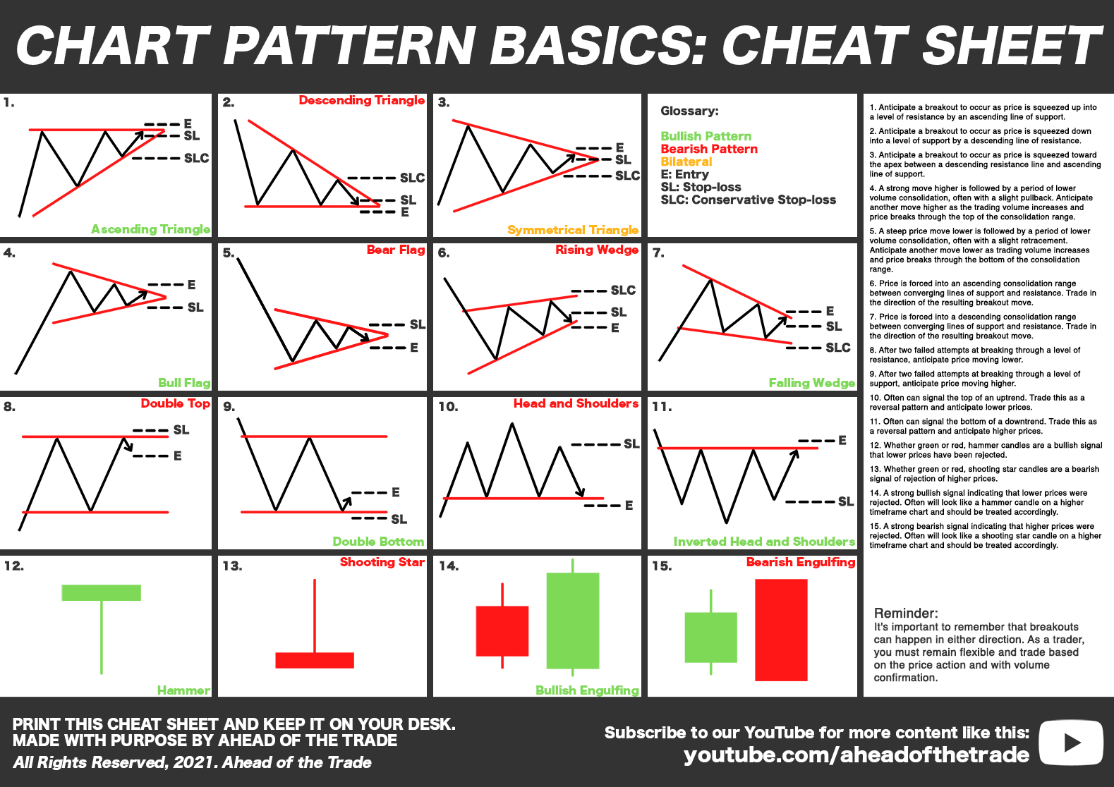 The Chart patterns cheat sheet is an essential tool for all beginning technical traders. It contains a diagram and brief description of how to best trade 15 different charting patterns and price action candles. | 29 | Cheat Sheet | PDF | Investing | $1.99 | Gumroad | |||